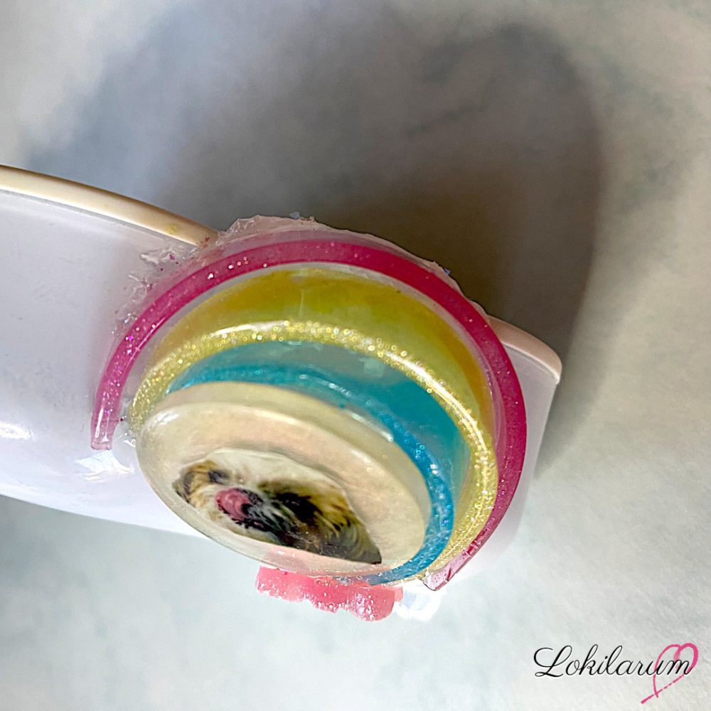 その下に暗闇でほんのり光る肉球を2つ の装飾をします。